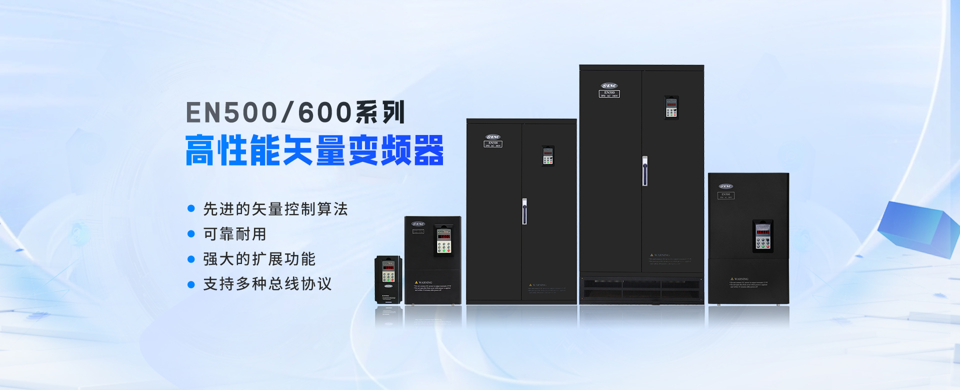 EN500/EN600系列高性能磁通矢量變頻器采用先進(jìn)的控制方式實(shí)現(xiàn)了高轉(zhuǎn)矩、高精度、寬調(diào)速驅(qū)動(dòng),可實(shí)現(xiàn)有PG矢量控制,無PG矢量控制,具有速度矢量和轉(zhuǎn)矩矢量?jī)煞N工作方式,能快速限住沖擊電流,廣泛用于高端制造業(yè)。該系列產(chǎn)品控制精度高、速度響應(yīng)快、低頻特性優(yōu)越,智能檢測(cè)與保護(hù)完善,豐富的外圍總線擴(kuò)展、端子擴(kuò)展、繼電器擴(kuò)展、模擬量擴(kuò)展等。